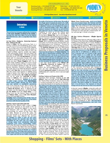 strategic position and breathtaking natural land- Pieve di Cadore with a visit to the historic center. tion with trekking and skiing. Proceeding to the Business Proposals in Veneto