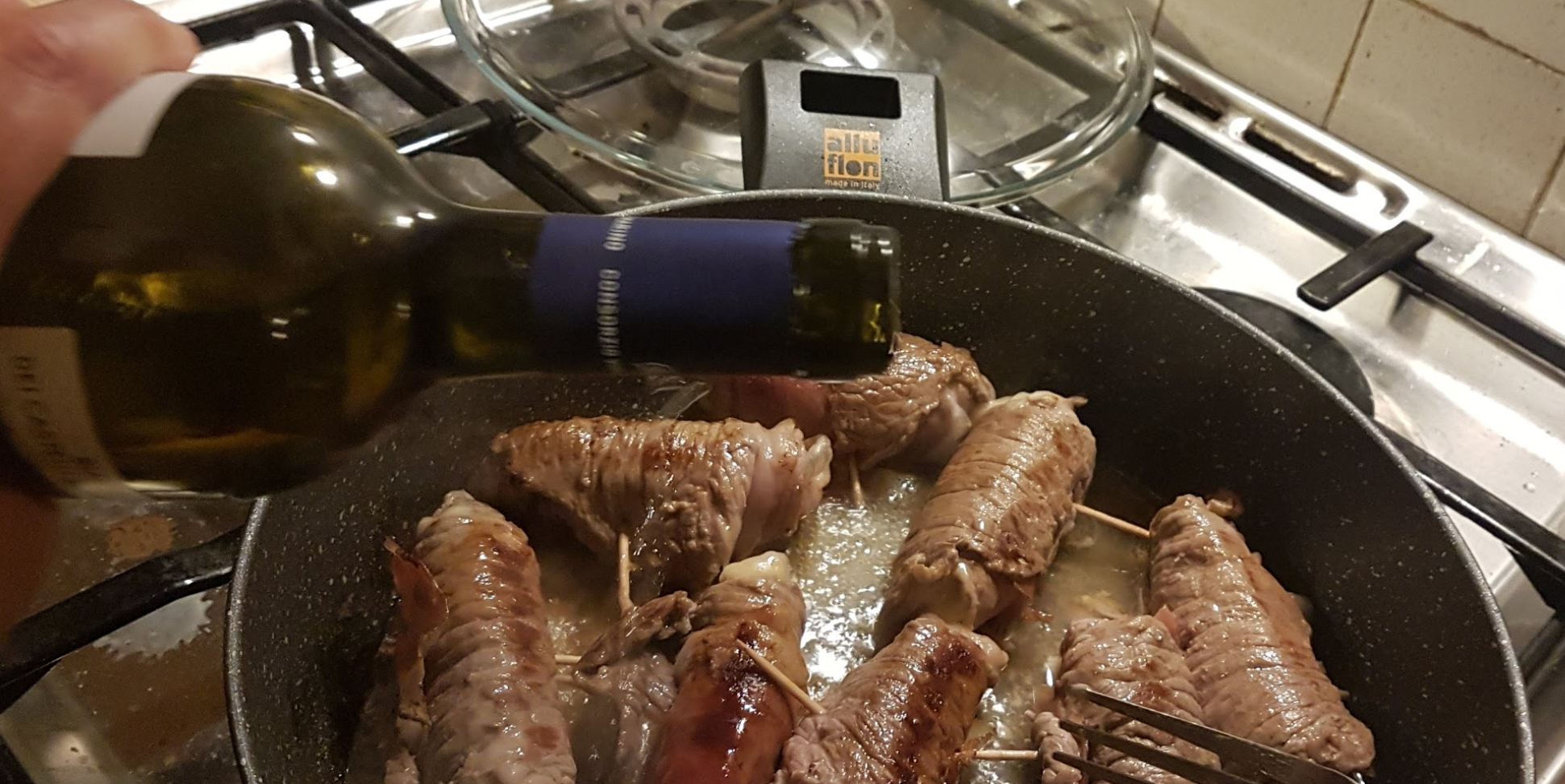 Quando la carne in cottura avrà acquisito la doratura, sfumate con un po’ di vino bianco e cuocete per qualche altro minuto.